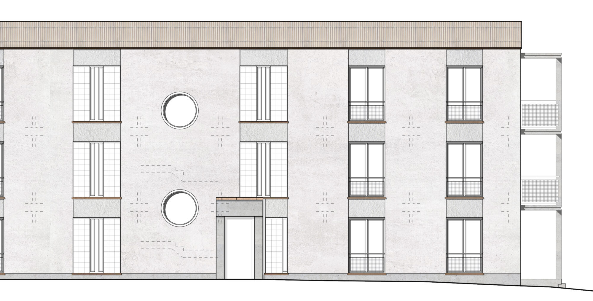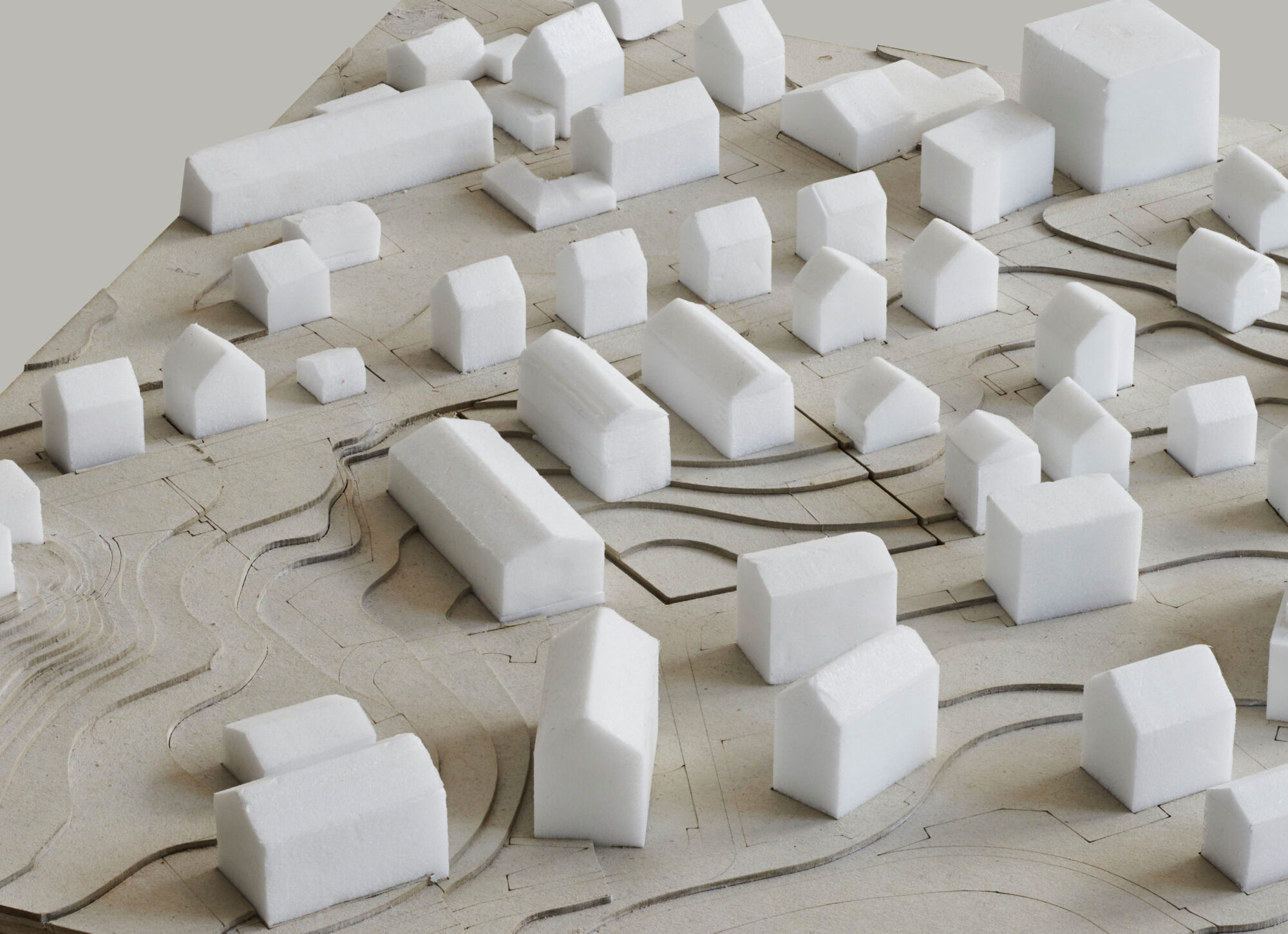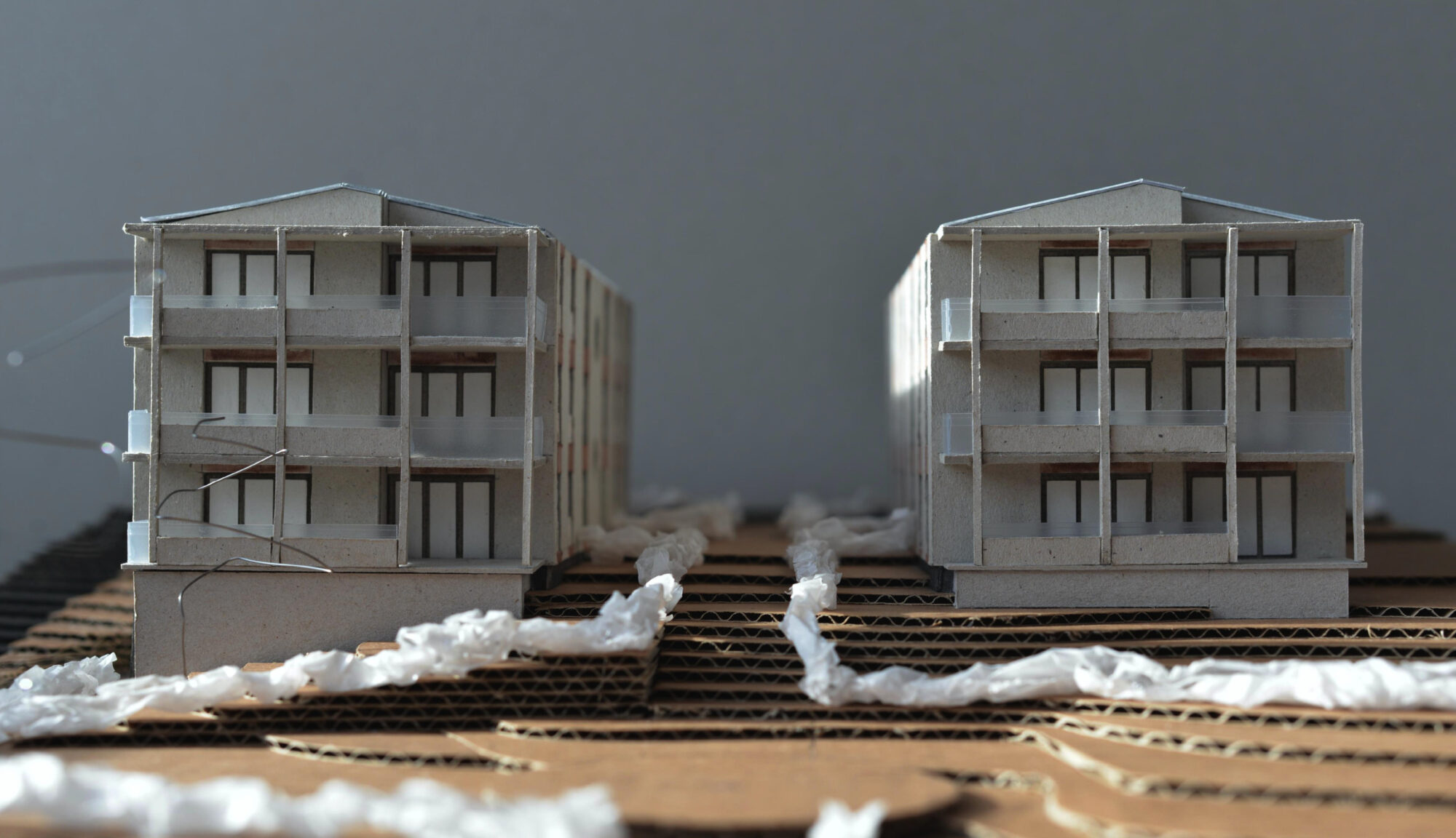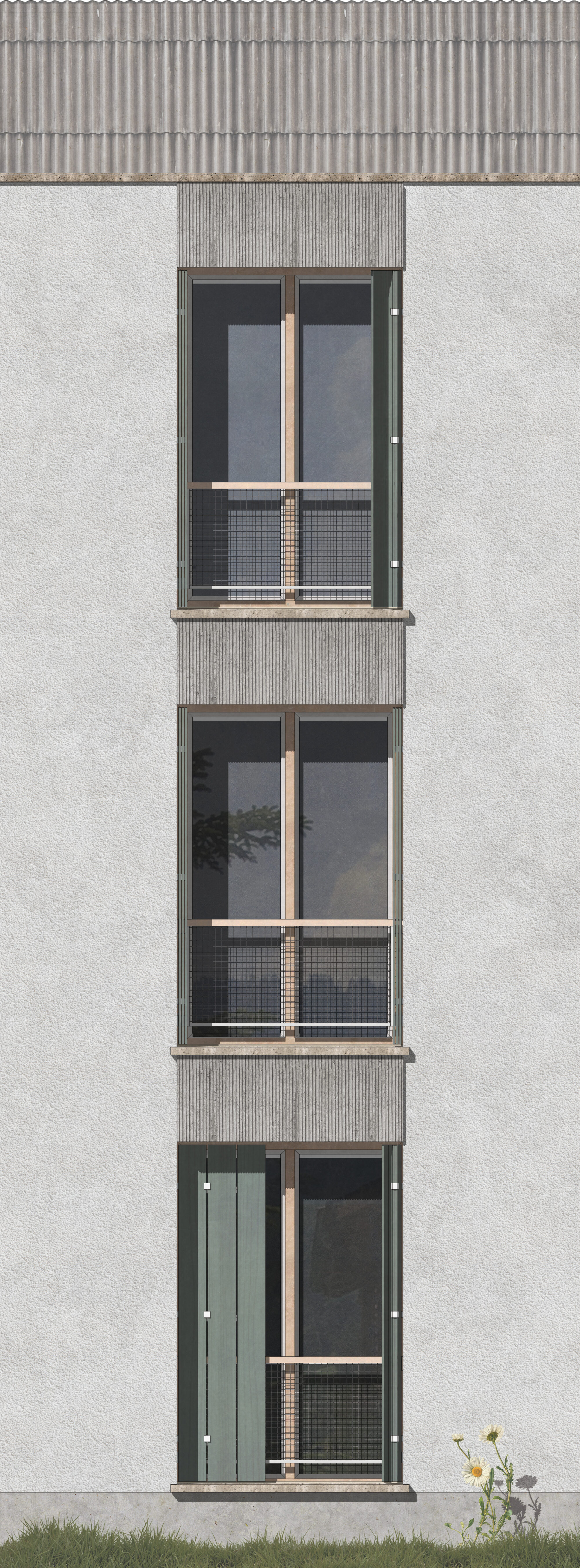 Das Quartier zeigt eine heterogene städtebauliche Struktur aus vier verschiedenen Zeitepochen, die nach dem Goldauer Felssturz und in den 70-er Jahren entstanden sind. Entlang der Zaystrasse reihen sich Arbeiterhäuser aus der Gründerzeit auf, welche noch heute ihren Charme versprühen und sich mit repräsentativen Fassaden zur Strasse hin ausrichten. Gleichzeitig befindet sich direkt an den Perimeter angrenzend ein langgezogener Industriebau, der sich grob in die quartiersübliche Masstäblichkeit eingliedert. Der Entwurf versucht zwischen diesen unterschiedlichen Welten zu vermitteln und bekennt sich gleichzeitig städtebaulich klar zu seiner Strassensituation: vorgelagerte Balkonschichten geben den Gebäuden ein Gesicht zur Strasse hin in Form einer zeitgenössischen Interpretation der giebelständigen Punktbauten entlang der Zaystrasse.
