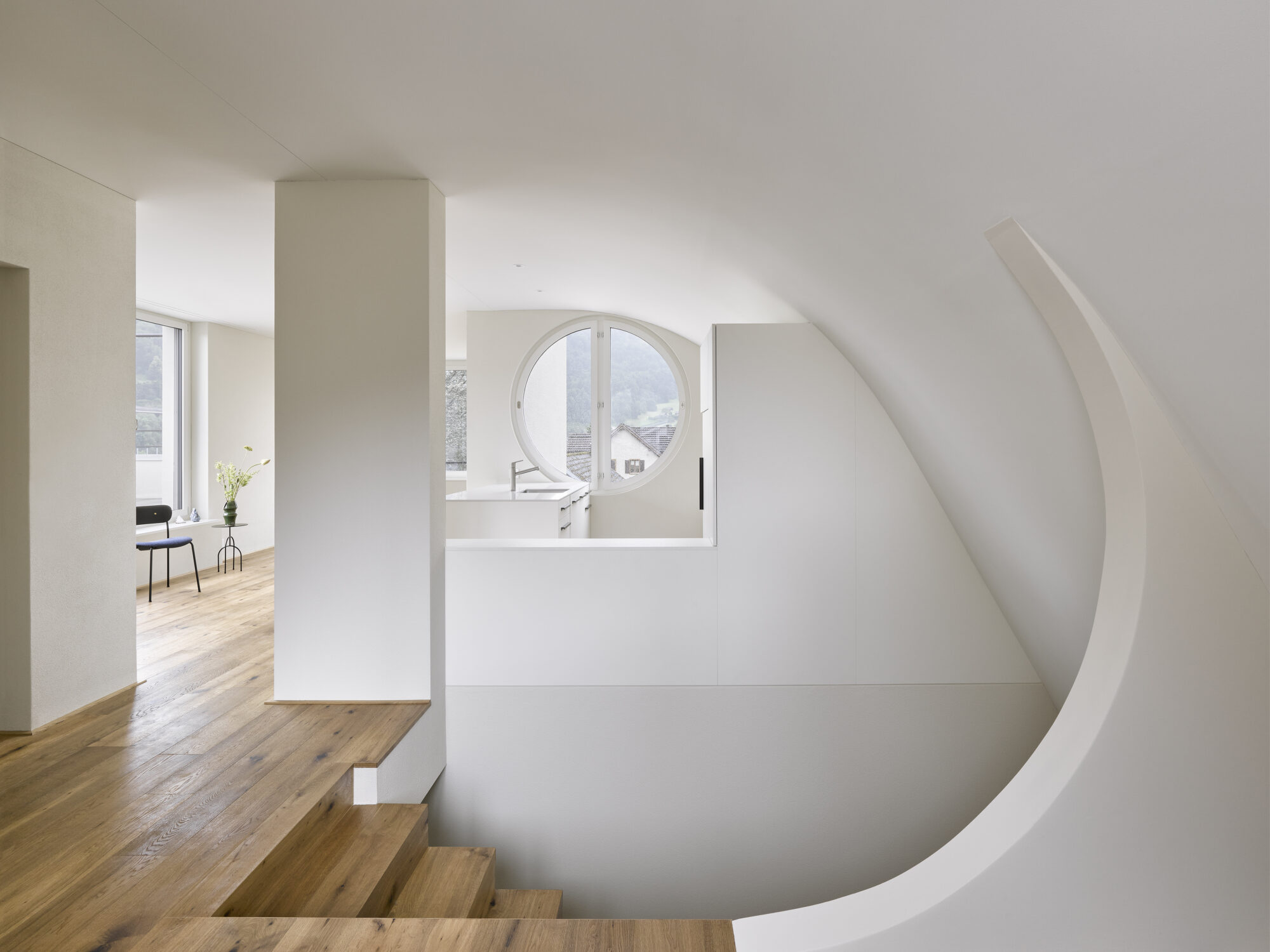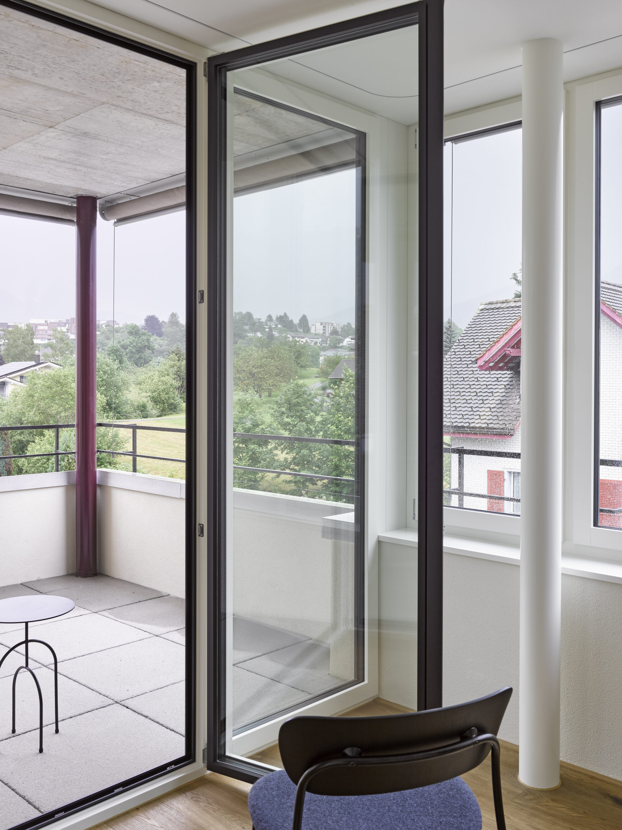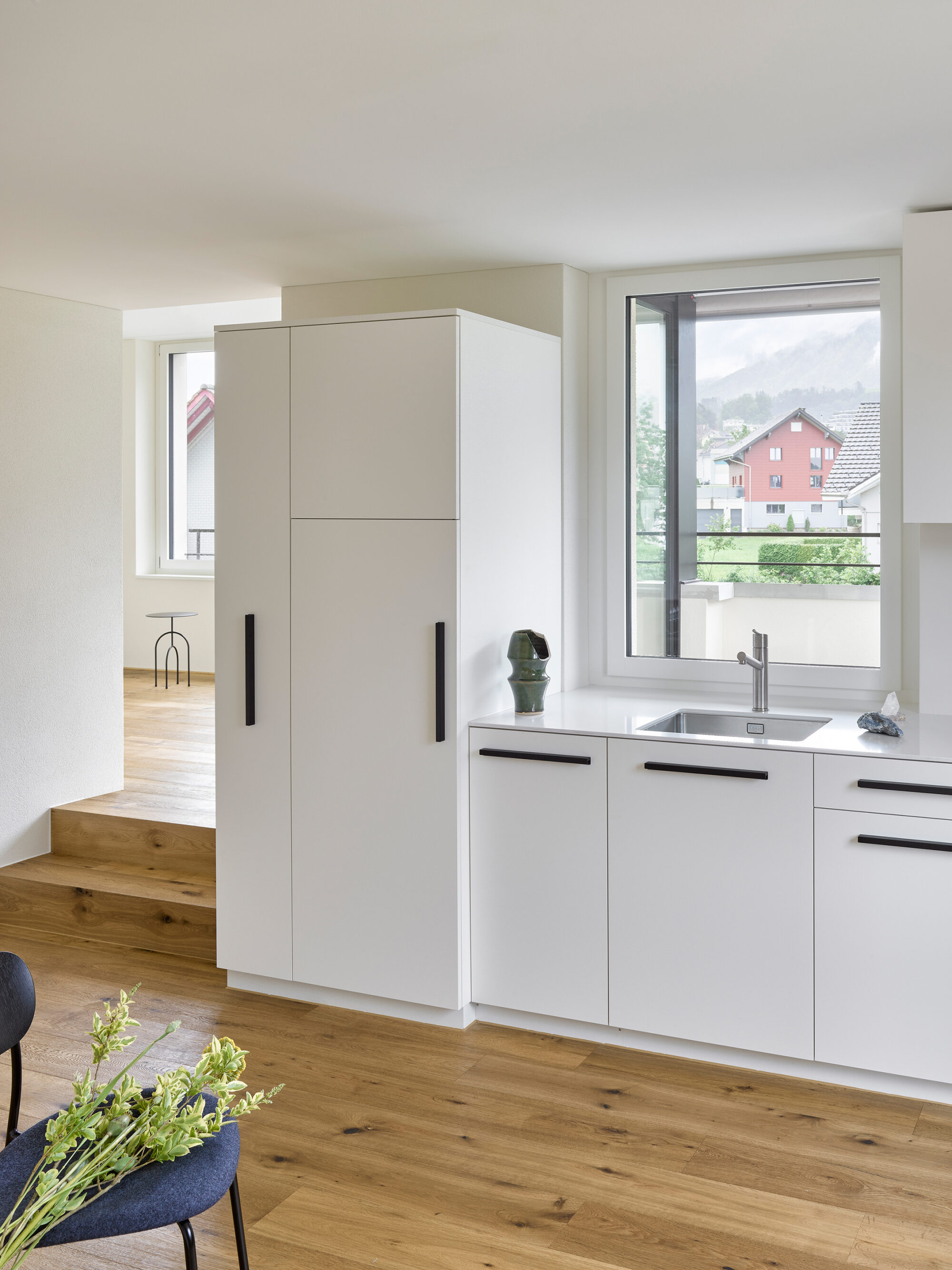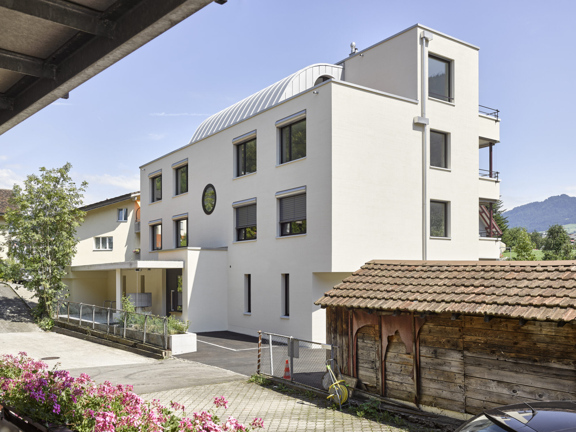 Steht ein Haus trauf- oder giebelseitig an der Strasse? Im ländlichen Kontext von Oberarth gibt die direkte Umgebung des neuen Wohnhauses darauf keine Antwort. Es bedarf eine eigene Vorstellung dazu zu entwickeln. Die Suche nach einem Baukörper, dessen klare Ausrichtung Stellung bezieht und dadurch den Strassen- als auch den rückwärtigen Raum stärkt, steht im Zentrum des Entwurfes. Als Quelle der Inspiration dienten in diesem Projekt Werke aus der klassischen Moderne.